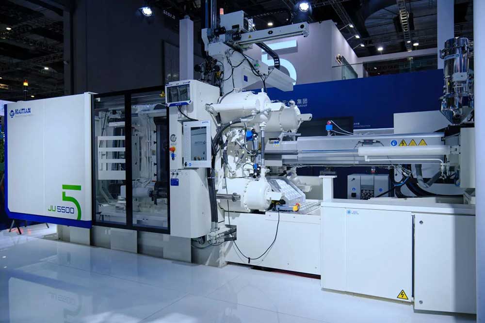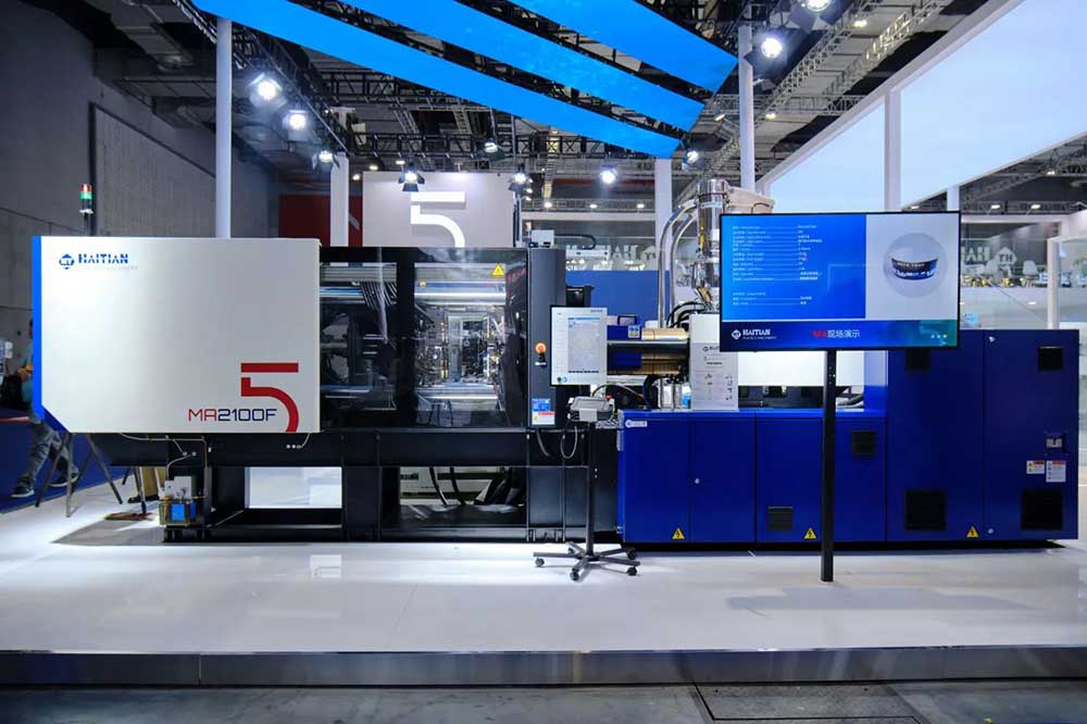 其中,海天国际全新五代机产品——VE600V-80h、VE1900V-430h、JU5500V/3450、MA2100F/580悉数亮相,分别聚焦光学、医疗、汽车及包装领域,呈现了高效、节能、灵智的专业解决方案,为现代塑料加工的智能生产流程注入了全新活力,是海天国际新质生产力的生动展示,在现场引起了巨大反响。